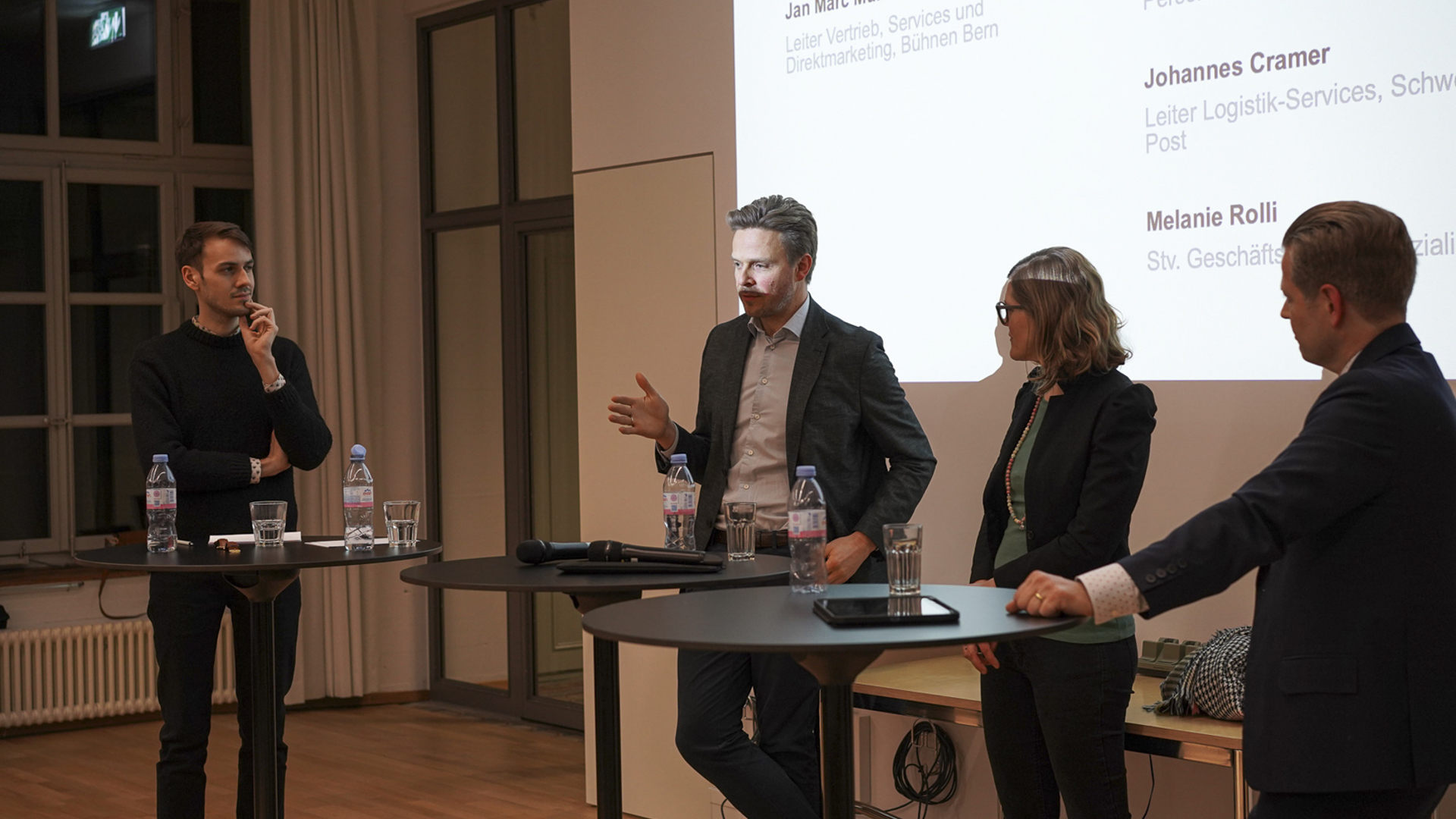 Alumni UniBE veranstaltete eine Podiumsdiskussion zum Thema Leadership, ein zentrales Thema, das vielseitig interessiert. Es wurden Themen angesprochen wie der Wandel von Führungsstilen, die Bedeutung gelebter Werte und der Umgang mit der digitalen Transformation. Jan Marc Müller (Bühnen Bern) moderierte die Diskussion zwischen Renato C. Müller Vasquez (Universität Bern), Melanie Rolli (Sozialinfo) und Johannes Cramer (Schweizerische Post) über die Herausforderungen, Ansätze und Beispiele der modernen Personalführung.