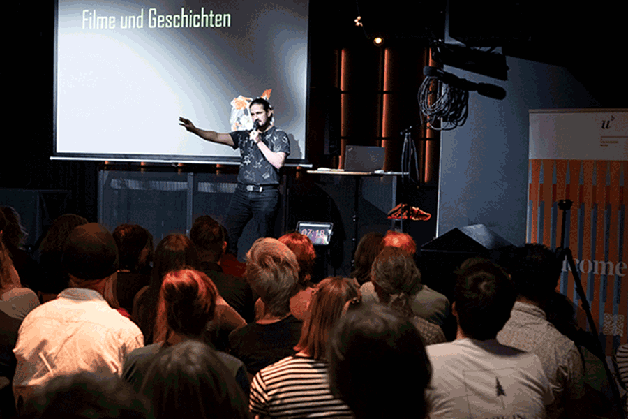 Sechs Slammerinnen und Slammer aus der ganzen Schweiz traten an diesem Abend im Stellwerk Bern gegeneinander an. In zehn Minuten mussten sie das Publikum von ihrem wissenschaftlichen Thema überzeugen, die Gewinnerin oder der Gewinner wurde am Ende des Abends per Applaus vom vollen Saal gekürt.